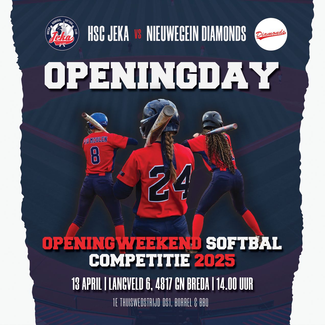 Openingday 13 april, Softbal Dames 1 JEKA Openingday 13 april, Softbal Dames 1 HSC JEKA vs. NIEUWEGEIN DIAMONDS! Softballiefhebbers, het is zover! Op 13 April trappen we het…HSC JEKA24 maart 2025
