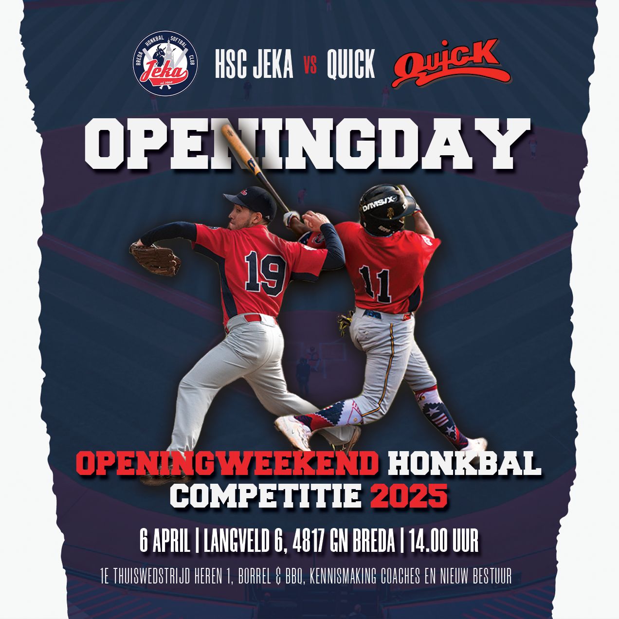 Openingday 6 april, Heren honkbal 1 HSC JEKA JEKA Openingday 6 april, Heren honkbal 1 HSC JEKA HSC JEKA vs. QUICK! Honkballiefhebbers, het is zover! Op 6 April trappen we het nieuwe…HSC JEKA24 maart 2025